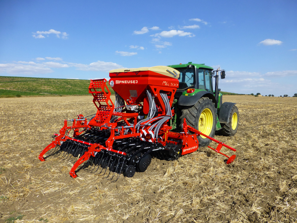 Seed drill MKC is designed for combination with active of passive soil cultivation machines, primarily for small and medium farms. The seed drill is produced in working width 3 m – 4 m – 4,5 m. As standard, the machine is equipped with a 1150 liters hopper, with a possibility to choose increased capacity of 1300 or 1600 liters. It is possible to use the machine separately with the use of universal chassis, that can be connected with quick-attach A-frame. Seed drill MKC can be combined with PSK power harrow.