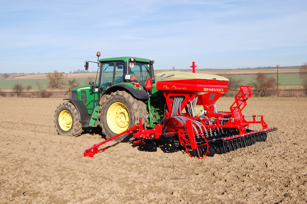 Seed drill is possible to aggregate with power harrow Pneusej PSK or with universal chassis.